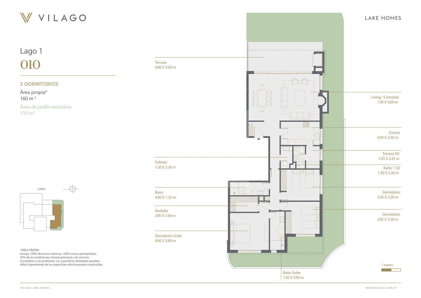 • Terraza hacia el lago, con parrillero y acceso a jardín de uso exclusivo.
