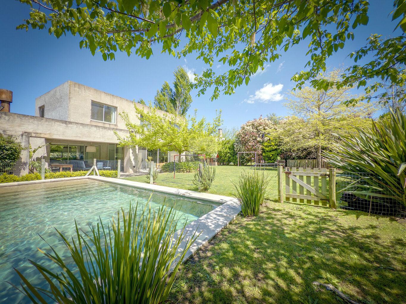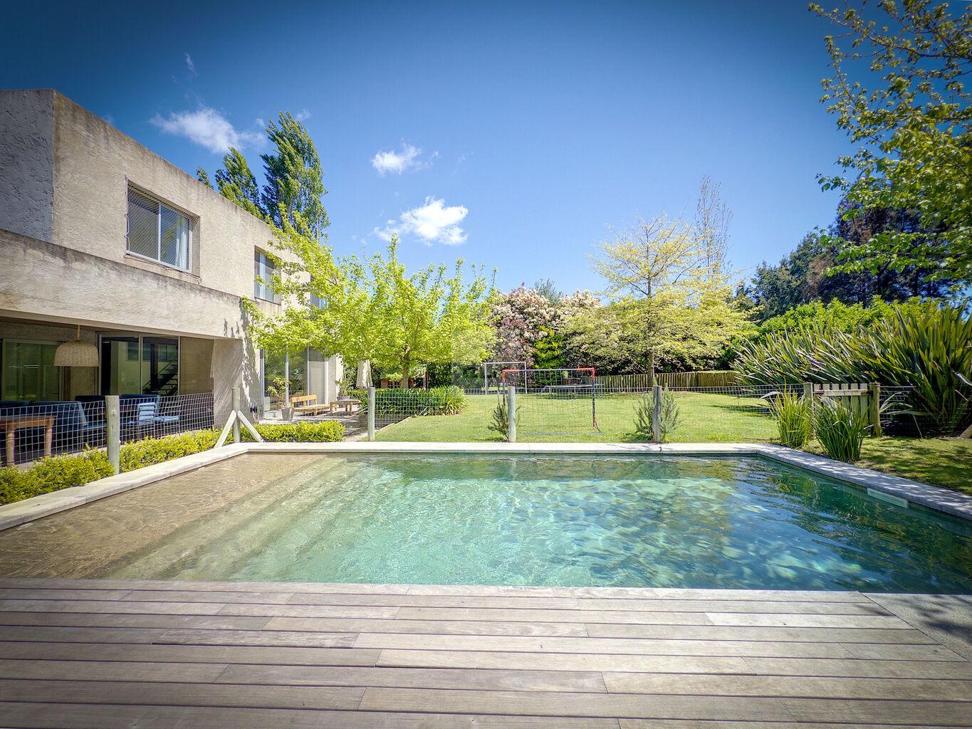 Outdoors, there’s a covered gallery with a traditional barbecue, a beautiful north-facing garden, and a swimming pool.
