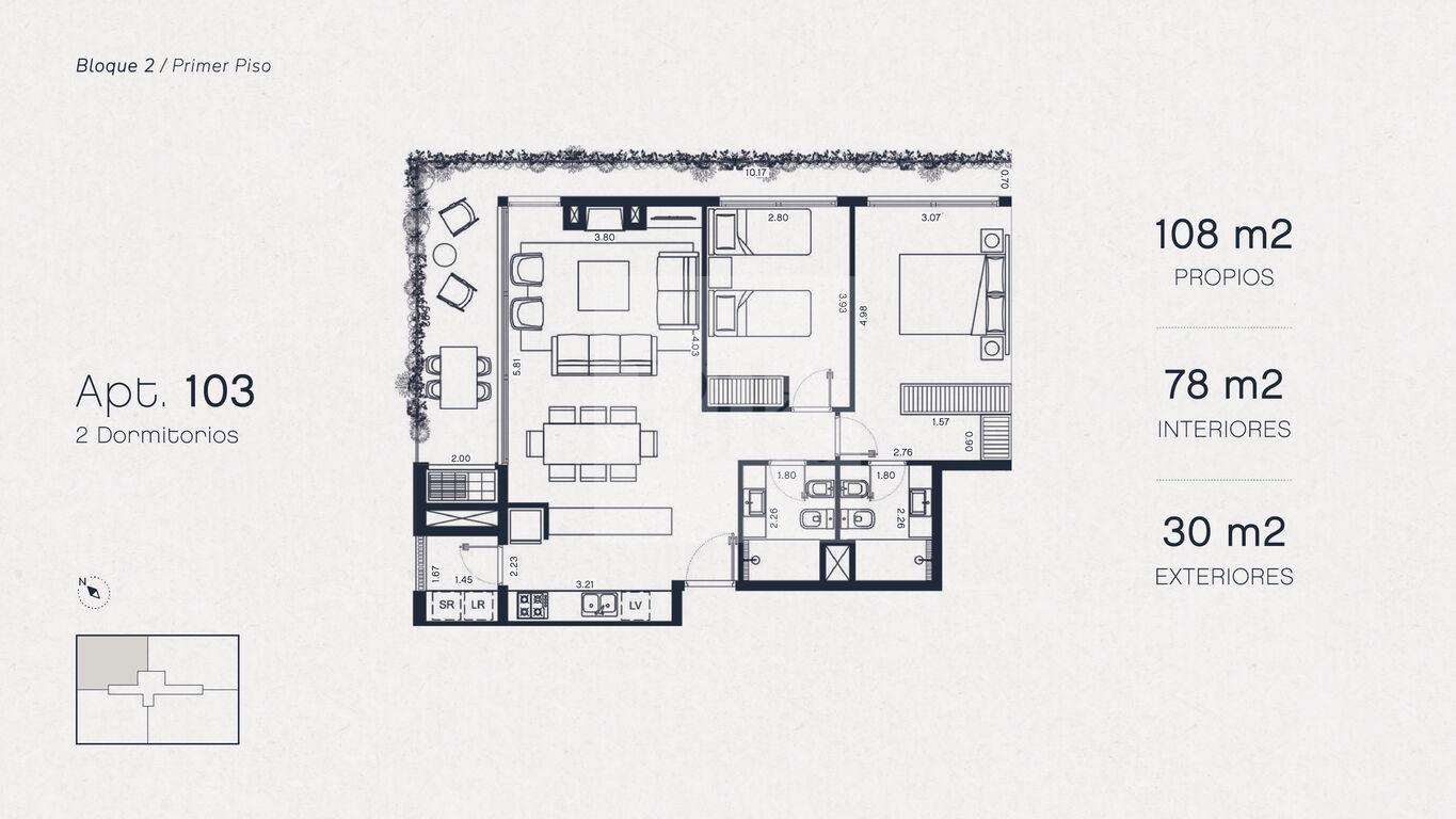 Bloque 2, Unidad 103 de 2 dormitorios en venta.