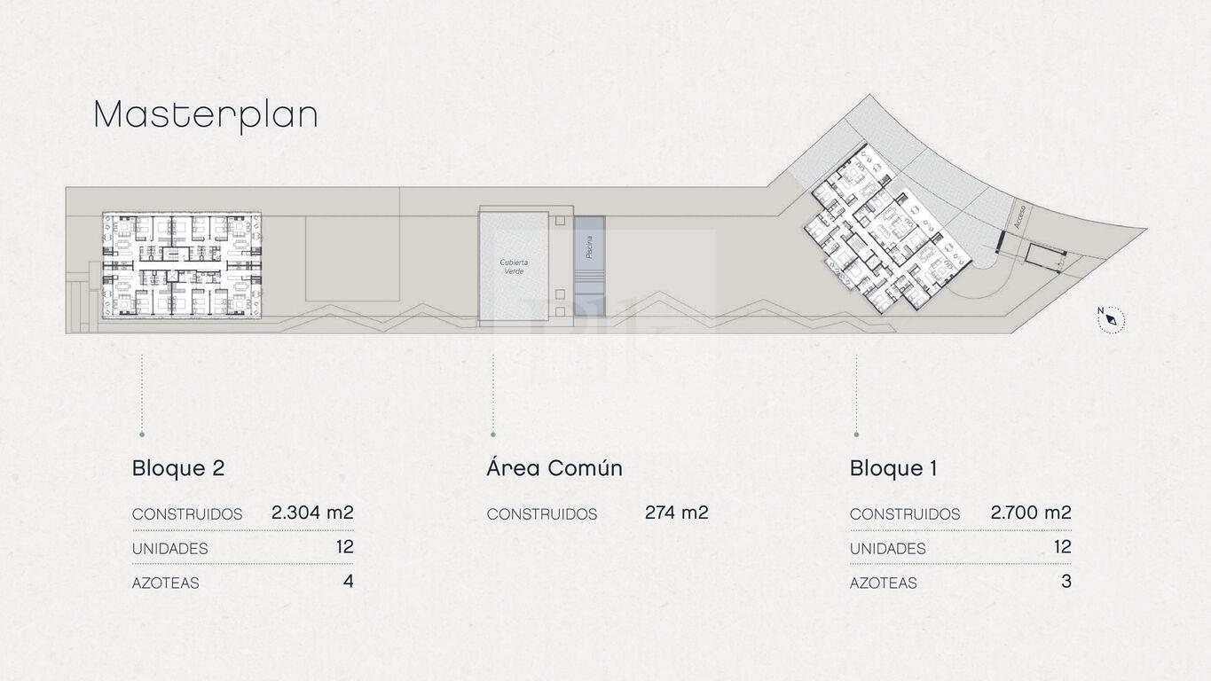 Bloque 1 con 4 niveles y un total de 12 apartamentos de 2 y 3 dormitorios.