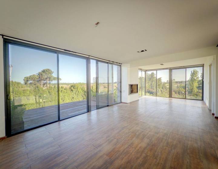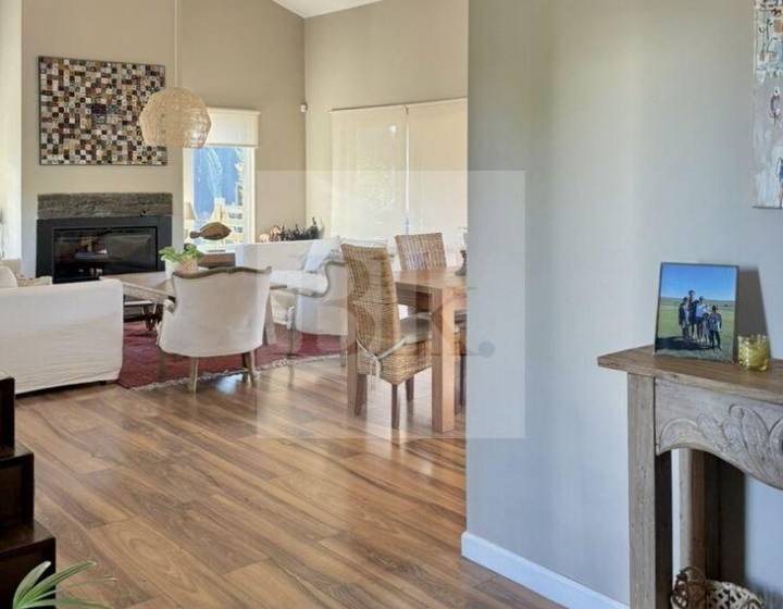 • Living con estufa tradicional y salida hacia el jardín.