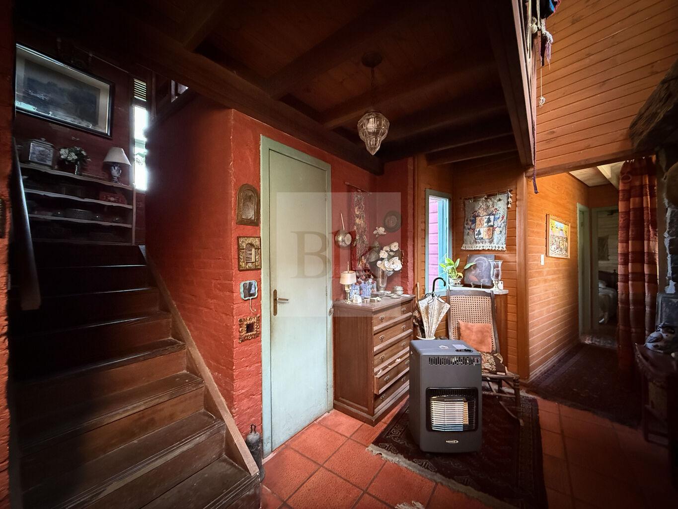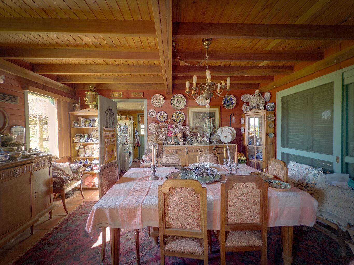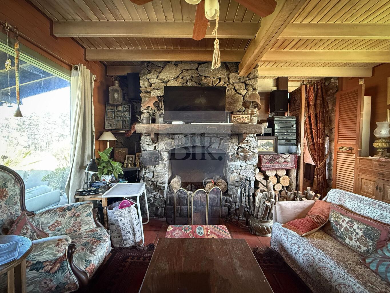 • Living comedor con gran estufa a leña revestida en piedra