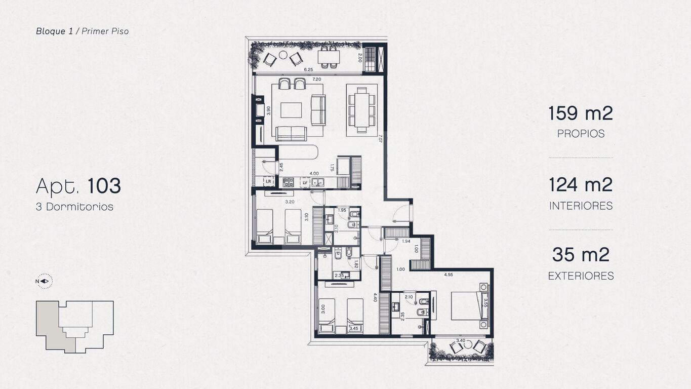 Bloque 1, Unidad 103 de 3 dormitorios en venta.